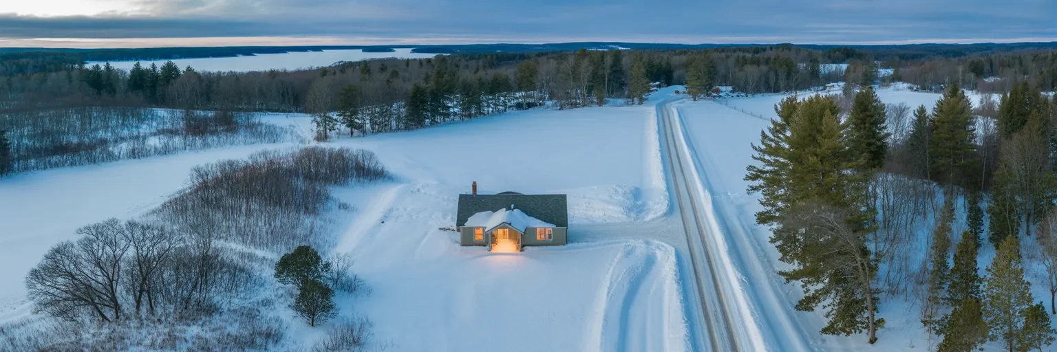 Residential home in Frankfort Michigan in winter showing snow-covered yard and driveway needing property services